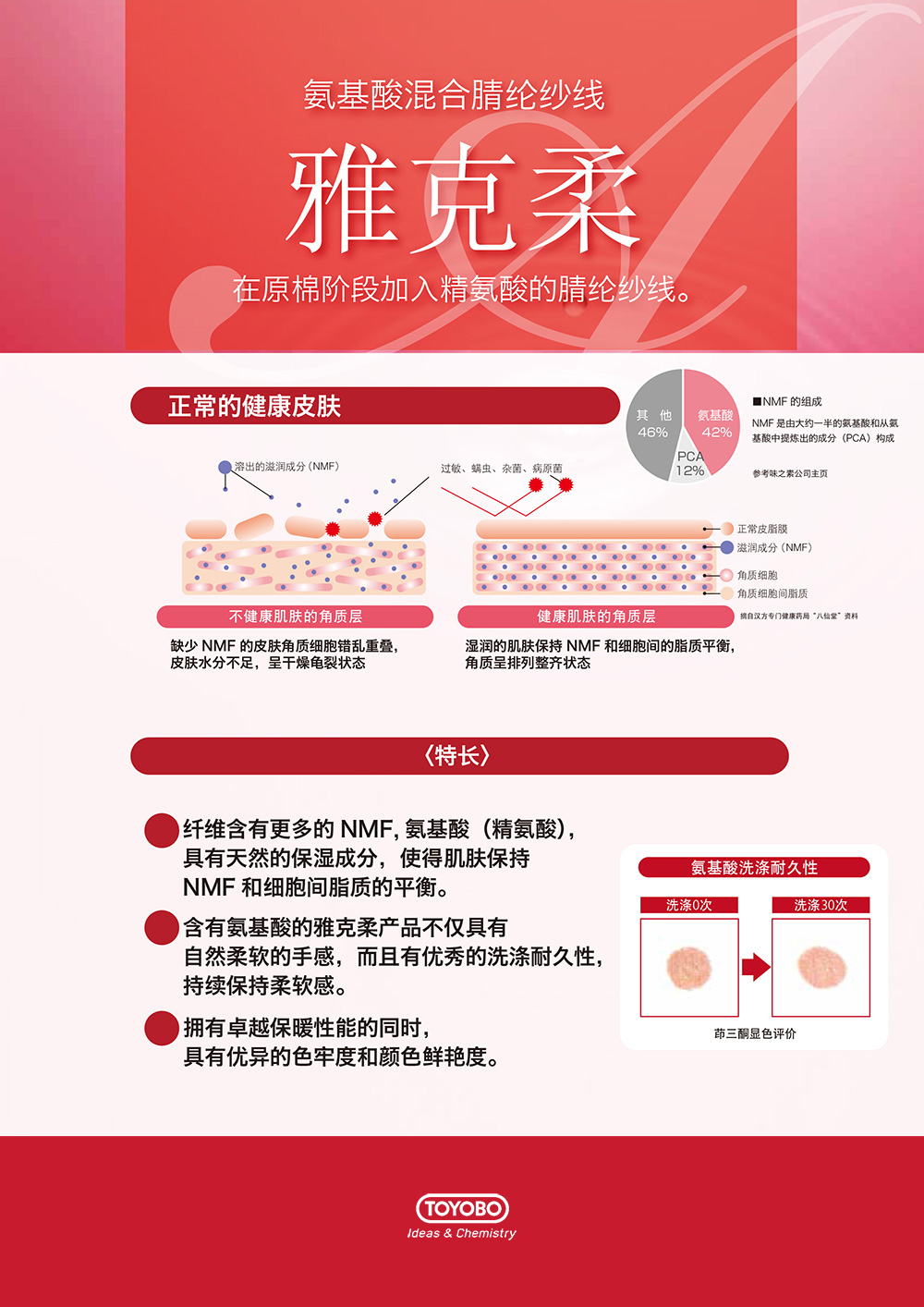 東洋紡作為丙烯材料的領(lǐng)導者,功能性腈綸紗線一直處在業(yè)界領(lǐng)先地位,多種多樣的超細和功能性纖維可以組合出上百個品種。滿足您在功能和成本的選擇,兼顧手感與抗起球的平衡。與您一同創(chuàng)意更合適的產(chǎn)品組合,為您品牌發(fā)展助力!